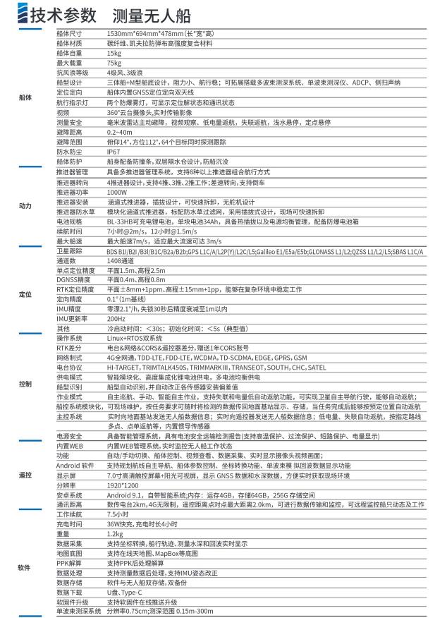 中海達iBoatBS15無人船中海達iBoatBS15無人船可用于水下地形測繪、水文測驗、疏浚通行、庫容測量iBoatBS15智能無人測量船搭載中海達8140P小型化多波束測深系統(tǒng),可輕松實現內...